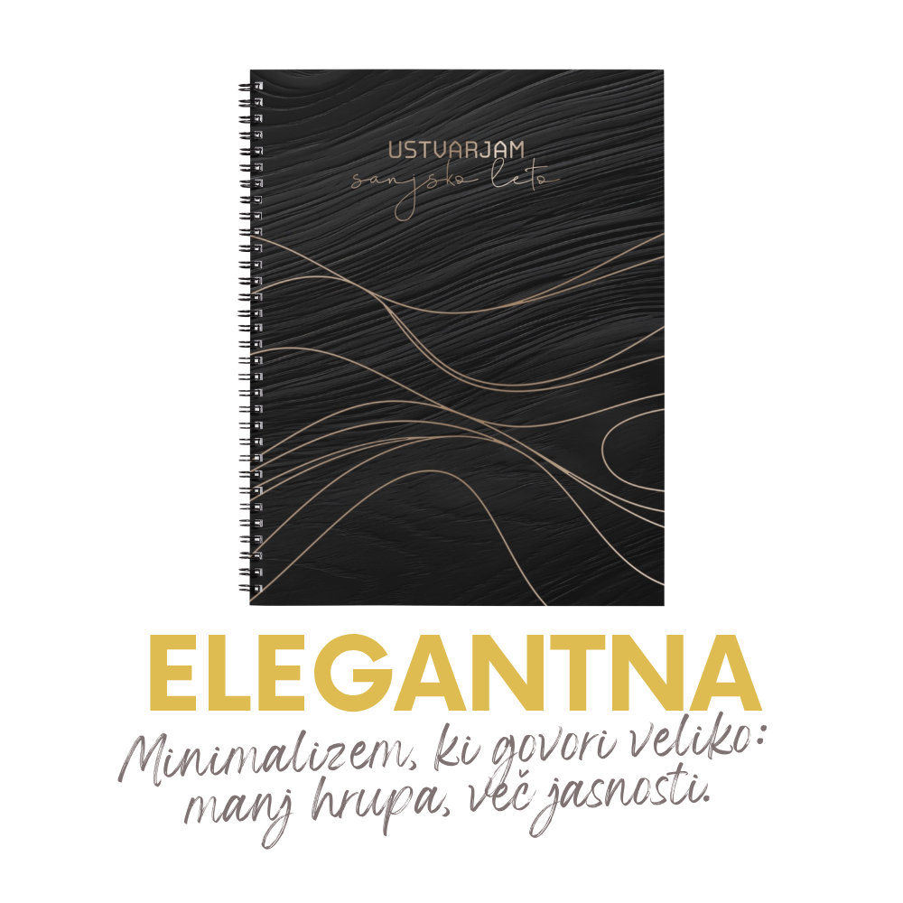 Pri planerju Ustvarjam sanjsko leto lahko želeno platnico pokombiniraš s katerokoli izmed treh različnih tedenskih razporeditev. Svoje obveznosti, proste misli in seznam hvaležnosti lahko zapisuješ v notranjost URE, MREŽA ali SIMPL.